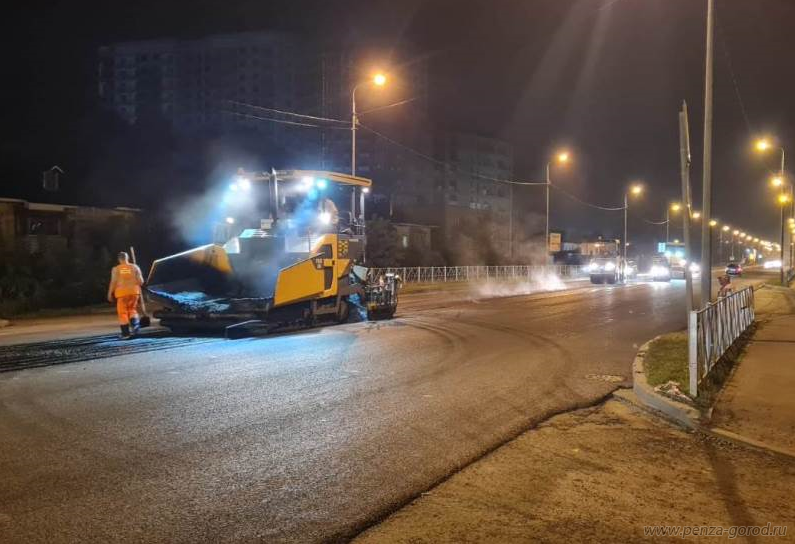 В Пензе на улице Измайлова работы укладке асфальта проводили ночью