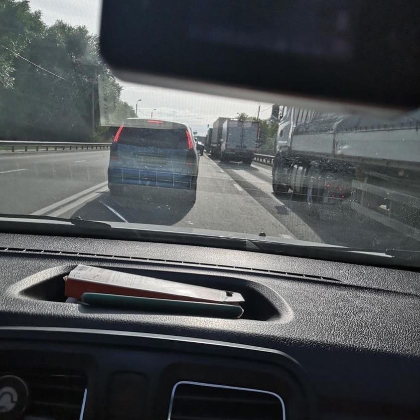 Также водител поделилс фото, на которой видно, что стоят и фуры, и легковые авто.