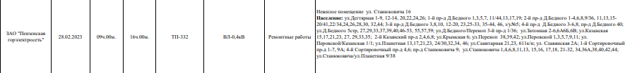 На сайте «Пензенская горэлектросеть» сообщается, что завтра 28 февраля пензенцы останутся на время без света. Отключение связано с ремонтными работами.
