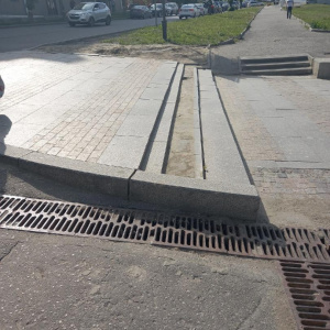 "Кто следит за состоянием городских объектов? На Московской рушатся плиты тротуара, также отваливаются плитки со стенок вокруг газона. Перед перекрестком с Кураева плиты с лестницы просто сняли, не сумели нормально закрепить", - посетовала женщина.