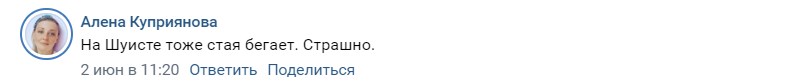 А: «Эту проблему нужно решать, и решить кардинально. Да, животных очень жалко. Но детей, себя и окружающих, мне ещё больше. Собак за последние года развелось очень много. Так называемая служба по отлову ничего не делает. Может только в моем случае. С собаками на улице Ушакова я борюсь не первый год. Не из-за того, что я или другие люди злые и они мешают жизни. А из-за того, что наши местные детки перестали кататься на велосипедах и бегать вокруг дома, старики местные ходят кто с отпугивателем, у кого шокер, у которых на эти изделия нет денег то держат в кармане кусок еды, дабы им отвлечь внимание собаки и как-то проскочить домой. В службу я обращалась уже четыре раза. Ответили мне официально заказным письмом, денег мне не жалко, лишь бы решили проблему. По моему обращению служба приехала, забрала в приемник где-то четыре собаки и все хорошо. Я обрадовалась. Но на следующий день увидела всё тех же собак, в том же составе. Удивилась, может ещё какие-то новые собаки у нас появились, и их поймали. Но наши местные бабушки рассказали, что из службы приехали, походили вокруг дома, собак не нашли, хотя они от сюда и не уходят, и спокойно уехали. Зачем, спрашивается, они мне тогда такой ответ прислали.